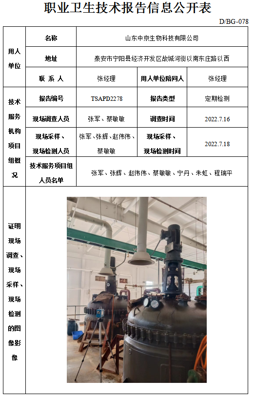 山东鑫天河新材料科技有限公司职业卫生定期检测