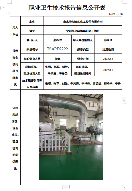 山东华阳迪尔化工股份有限公司职业卫生定期检测