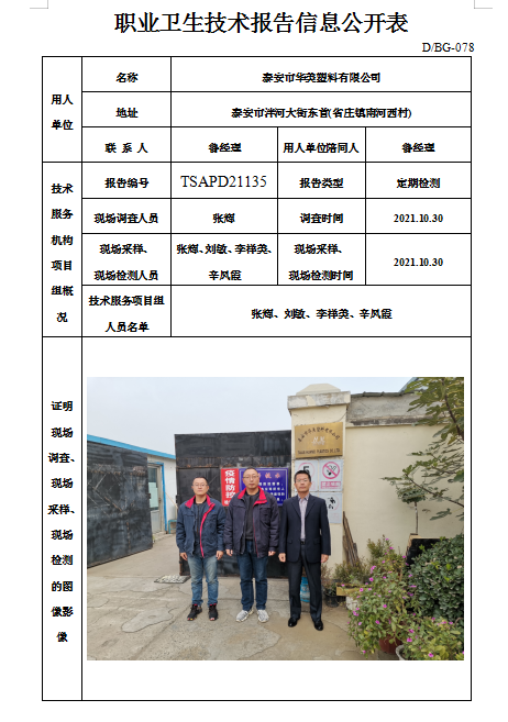 泰安嘉诚水质净化有限公司职业卫生定期检测