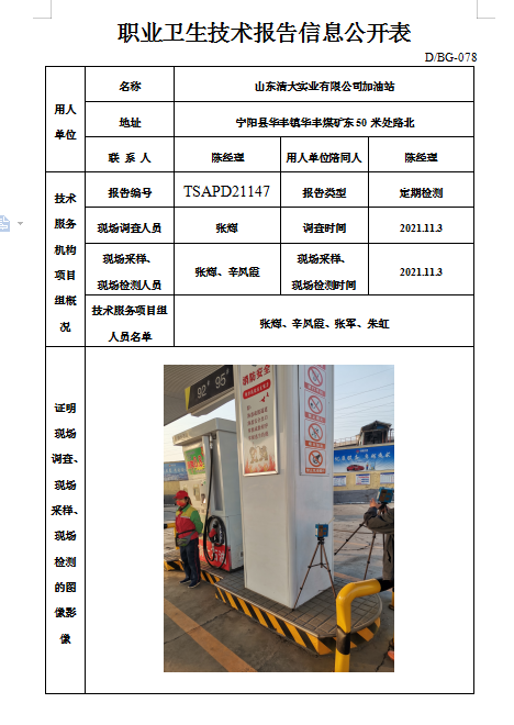 泰安市捷宜复合材料科技有限公司职业卫生定期检测