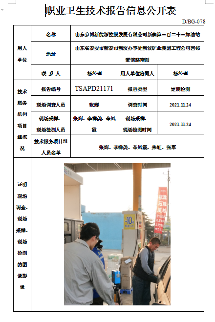 山东京博新能源控股发展有限公司新泰第三百二十三加油站职业卫生定期检测