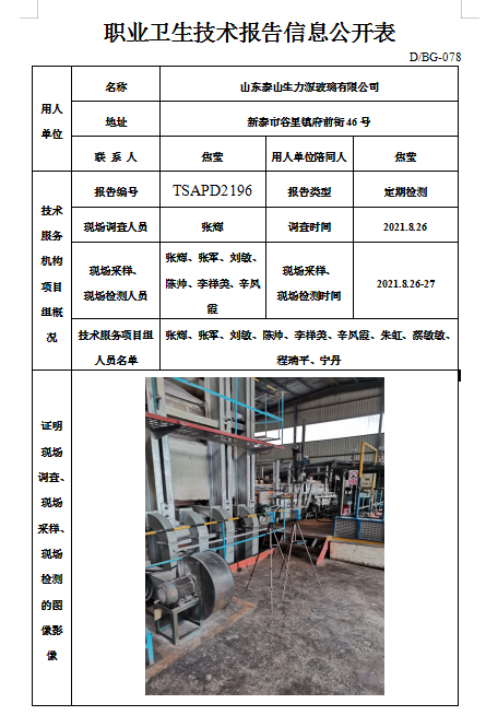 山东泰山生力源玻璃有限公司职业卫生定期检测