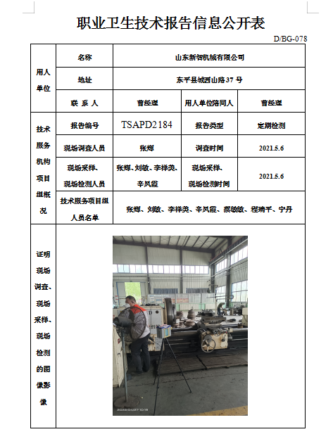 山东鑫聚丰泵业科技有限公司职业卫生定期检测
