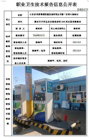 山东京博新能源控股发展有限公司第一百零七加油站职业卫生定期检测