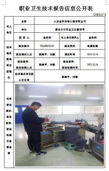 泰安欧亚厨房用品有限公司职业卫生定期检测