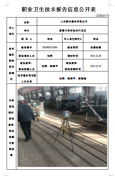 山东泰丰钢业有限公司职业卫生定期检测