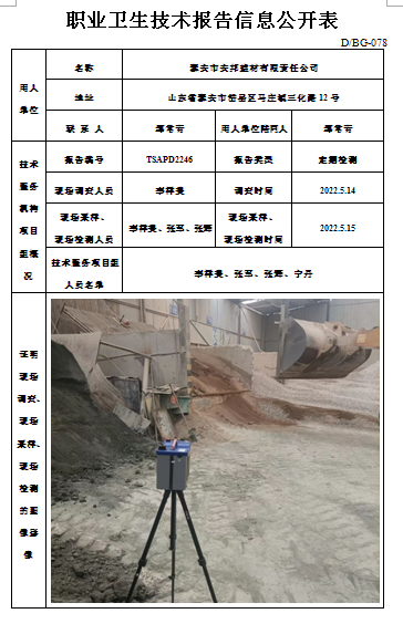 泰安市安邦建材有限责任公司职业卫生定期检测