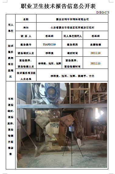 泰安吉利中慧饲料有限公司职业卫生定期检测