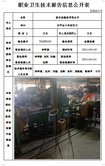 泰安市盛宏春酿酒设备有限公司职业卫生定期检测