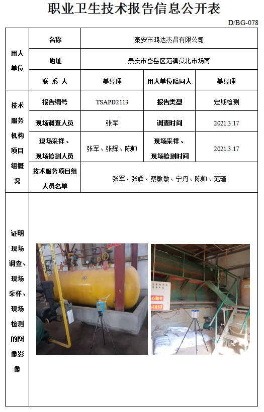 泰安市鸿达杰昌食品有限公司职业卫生定期检测