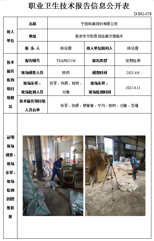 宁阳和美饲料有限公司职业卫生定期检测