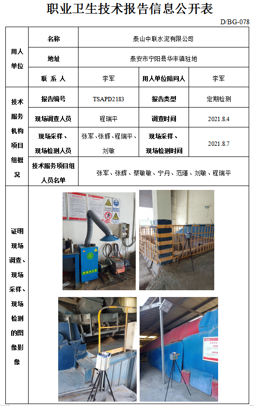 泰山中联水泥有限公司职业卫生定期检测