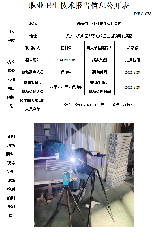 泰安冠达机械配件有限公司职业卫生定期检测