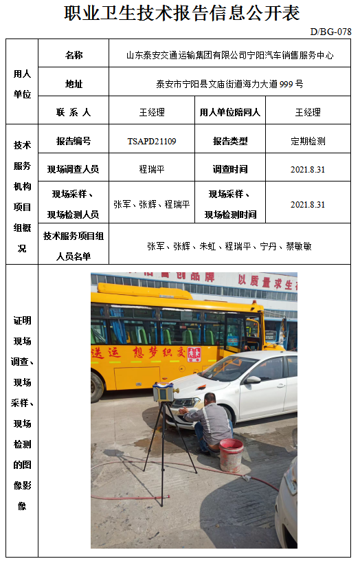 山东泰安交通运输集团有限公司宁阳汽车销售服务中心职业卫生定期检测