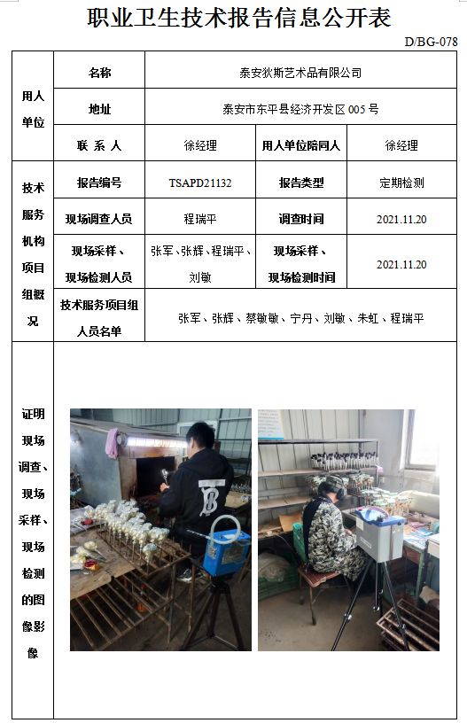 泰安狄斯艺术品有限公司职业卫生定期检测