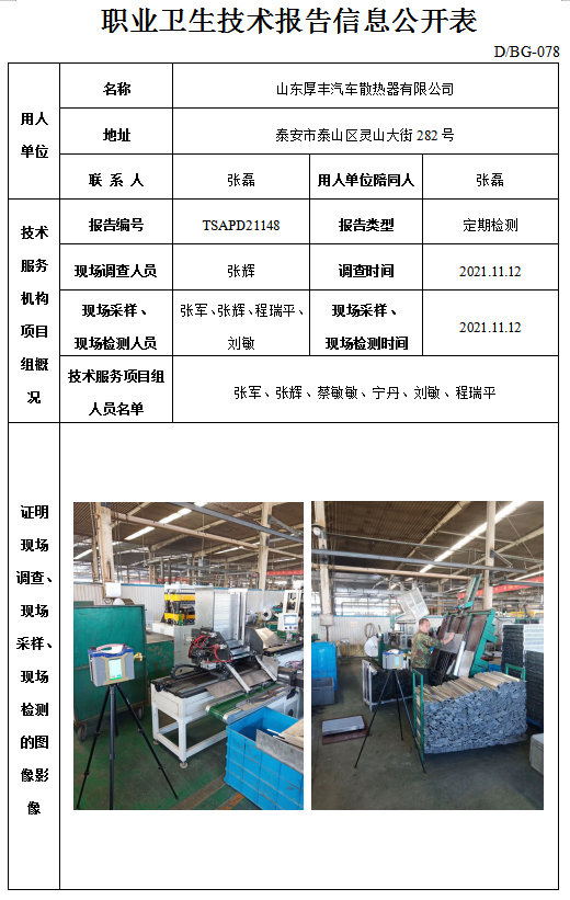 山东厚丰汽车散热器有限公司职业卫生定期检测