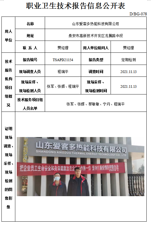 泰安华丰顶峰热电有限公司职业卫生定期检测
