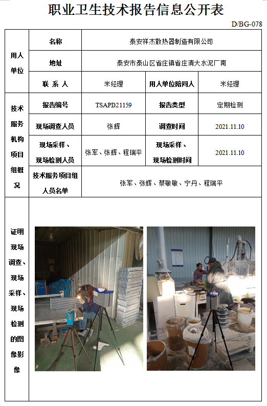 泰安祥杰散热器制造有限公司职业卫生定期检测