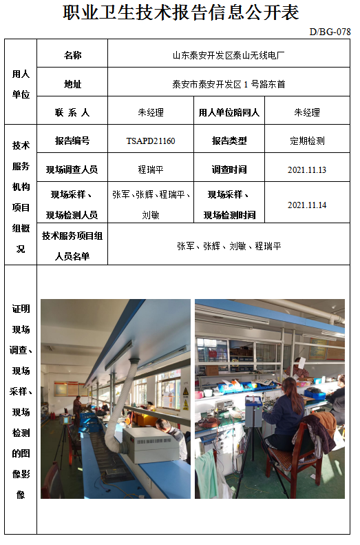 山东泰安开发区泰山无线电厂职业卫生定期检测