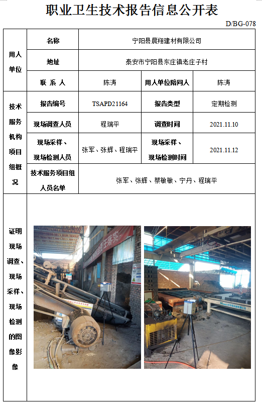 宁阳县晨翔建材有限公司职业卫生定期检测