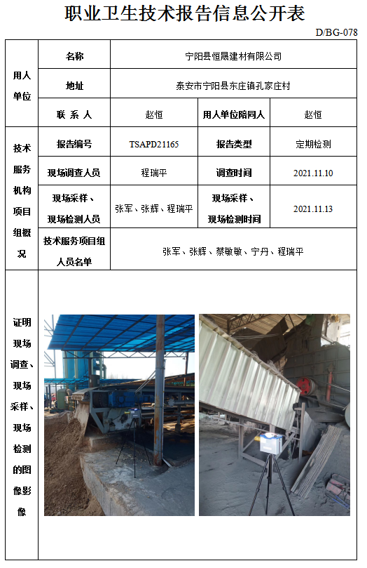 宁阳县恒晟建材有限公司职业卫生定期检测