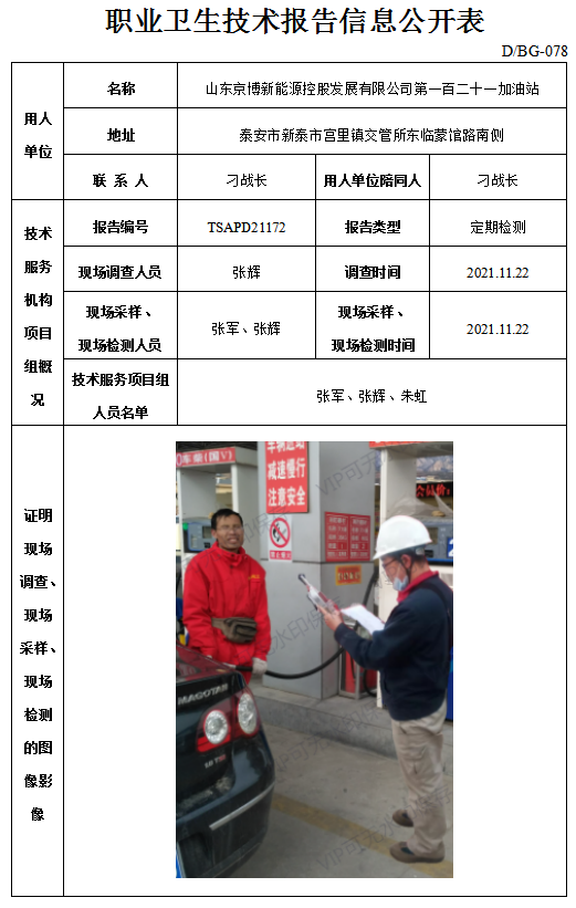 山东京博新能源控股发展有限公司第一百二十一加油站职业卫生定期检测