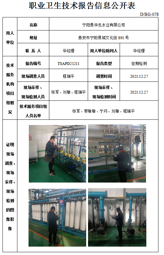 泰安市中源石油油品销售有限公司第二加油站职业卫生定期检测