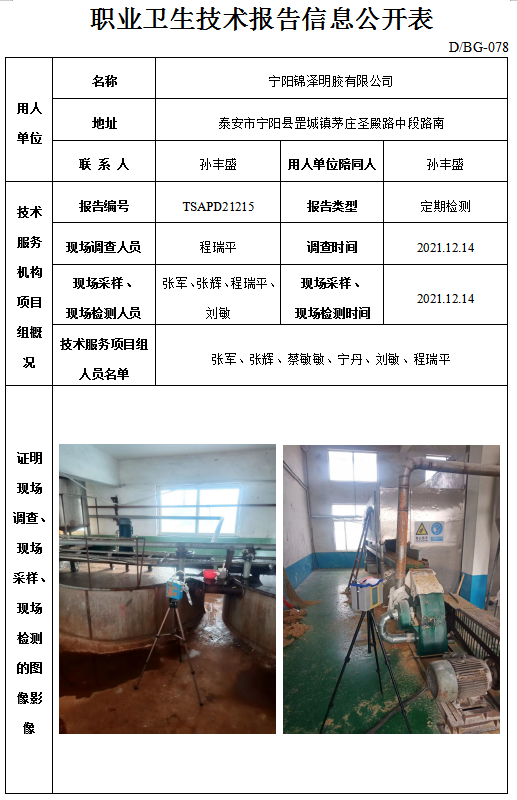 宁阳锦泽明胶有限公司职业卫生定期检测