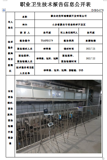 泰安北控环境能源开发有限公司职业卫生定期检测