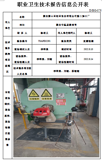 新泰众客瑞嘉食品有限公司职业卫生定期检测