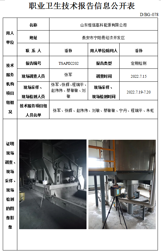 泰安泰山亚细亚食品有限公司第二加工厂职业卫生定期检测