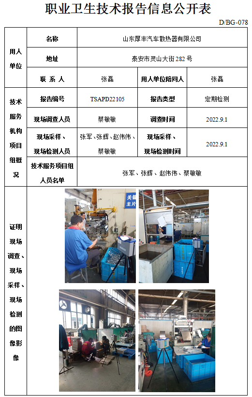 山东厚丰汽车散热器有限公司职业卫生定期检测