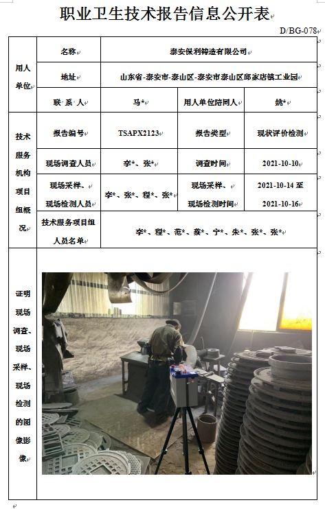 泰安保利铸造有限公司职业卫生评价检测