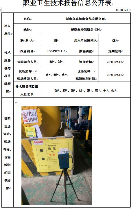 新泰众客恒泰食品有限公司职业卫生定期检测