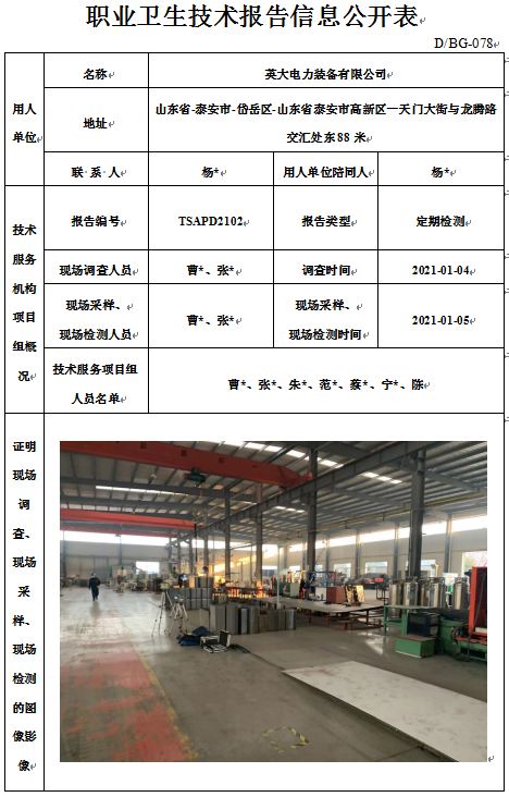 新泰众客瑞嘉食品有限公司职业卫生定期检测