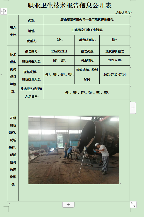 泰山石膏有限公司一分厂现状评价报告