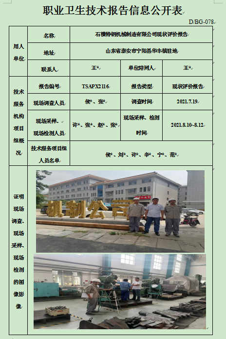 石横特钢机械制造有限公司现状评价报告
