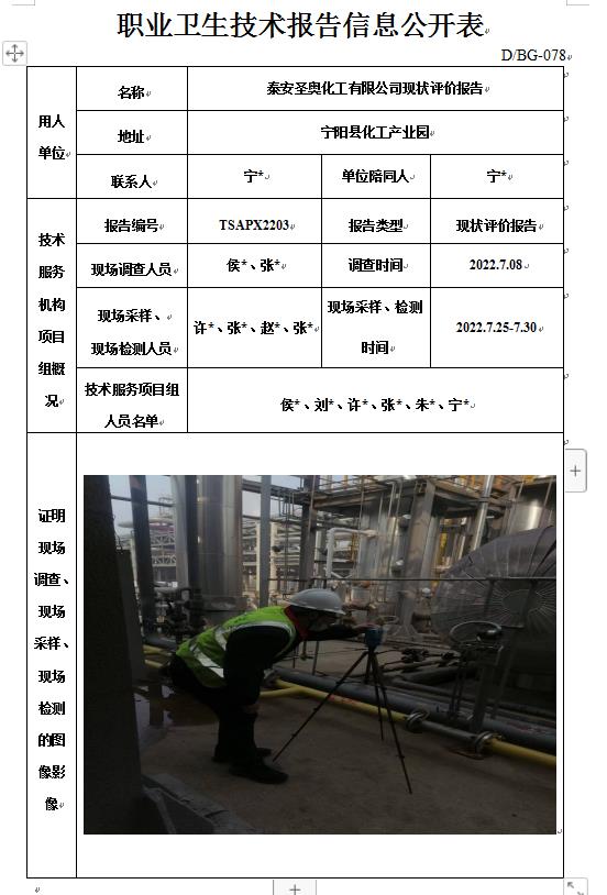 泰安市蓝天助剂有限公司职业病危害现状评价