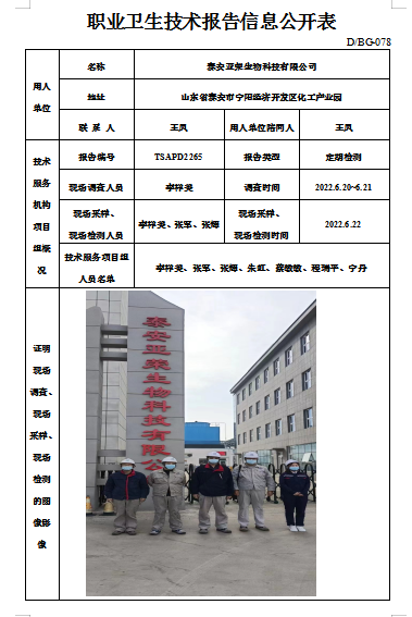 泰安亚荣生物科技有限公司职业卫生定期检测