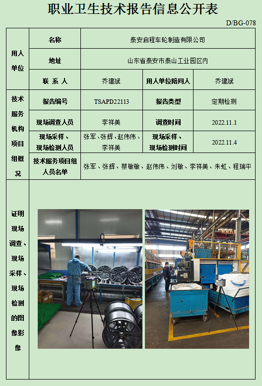 泰安启程车轮制造有限公司职业卫生定期检测