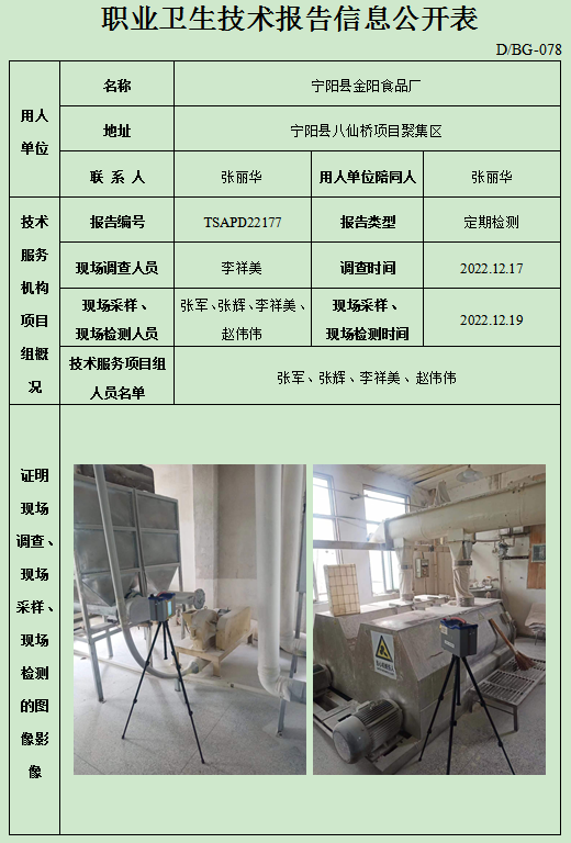 宁阳县金阳食品厂职业卫生定期检测