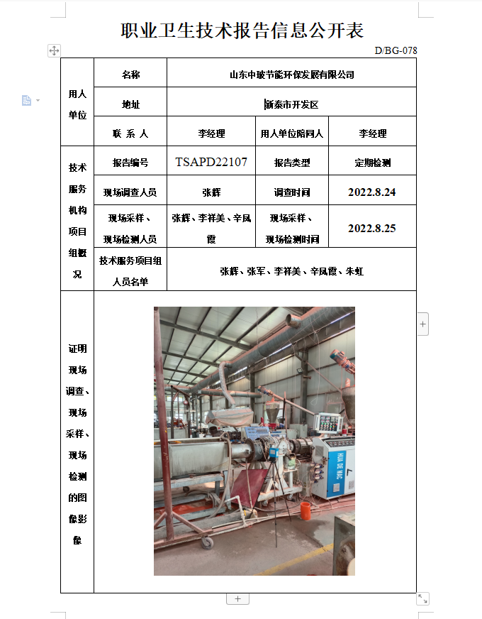 山东中玻节能环保发展有限公司职业卫生定期检测