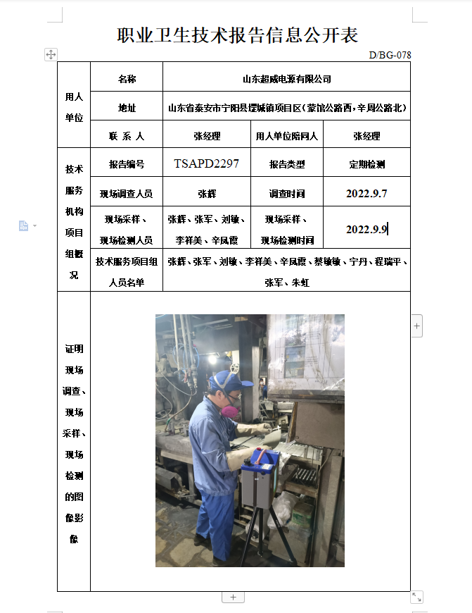 山东卓泰油脂科技有限公司职业卫生定期检测