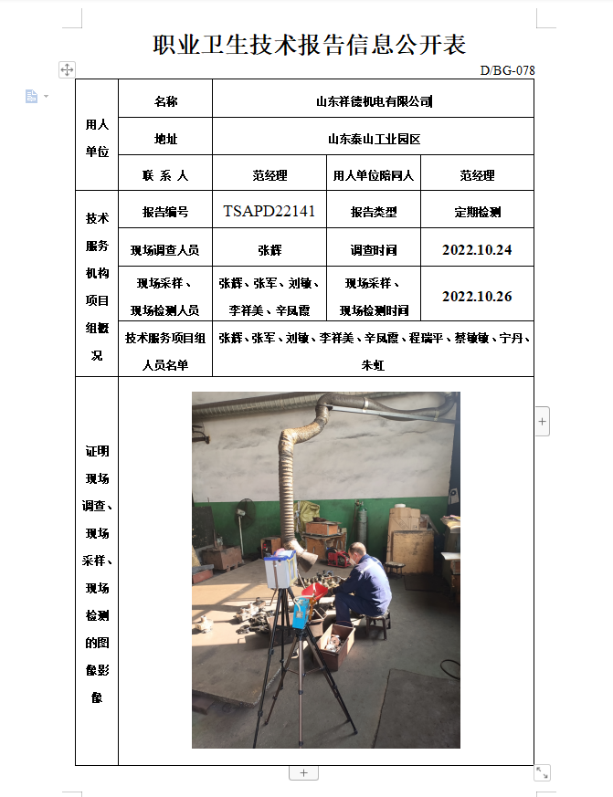 山东祥德机电有限公司职业卫生定期检测