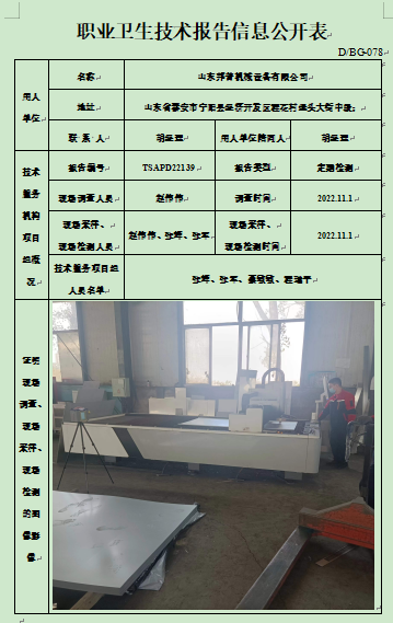 青岛中海石油科技有限公司泰安分公司职业卫生定期检测