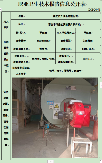 泰安日升食品有限公司职业卫生定期检测
