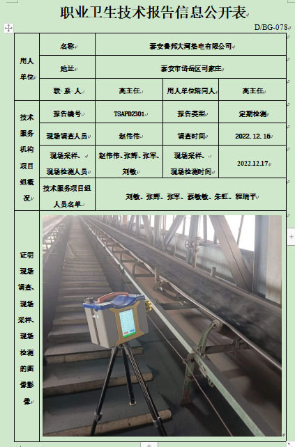泰安鲁邦大河热电有限公司职业卫生定期检测