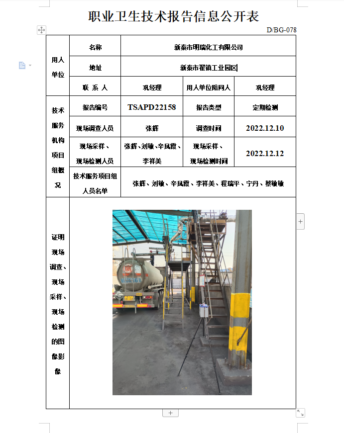 新泰市明瑞化工有限公司职业卫生定期检测