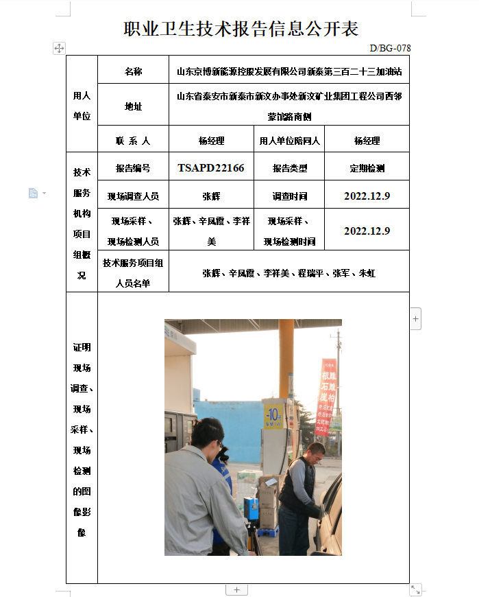 山东京博新能源控股发展有限公司新泰第三百二十三加油站职业卫生定期检测