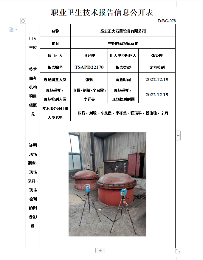 泰安正大石墨设备有限公司职业卫生定期检测